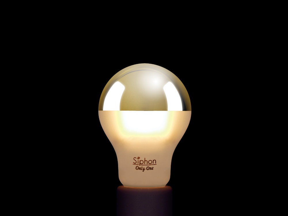 ハーフミラーやTミラーとよばれている、電球のTOPが加飾されている電球です。加飾されている部分は光を通さず、直接見ても眩しくなく優しく光が拡散します。 灯具やインテリアのテイストを選ばないベーシックな電球のデザイン。より洗練された空間の演出に。