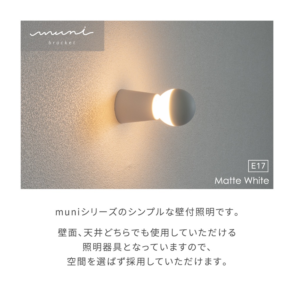 muniシリーズのシンプルな壁付照明です。 壁面、天井どちらでも使用していただける 照明器具となっていますので、空間を選ばず採用していただけます。